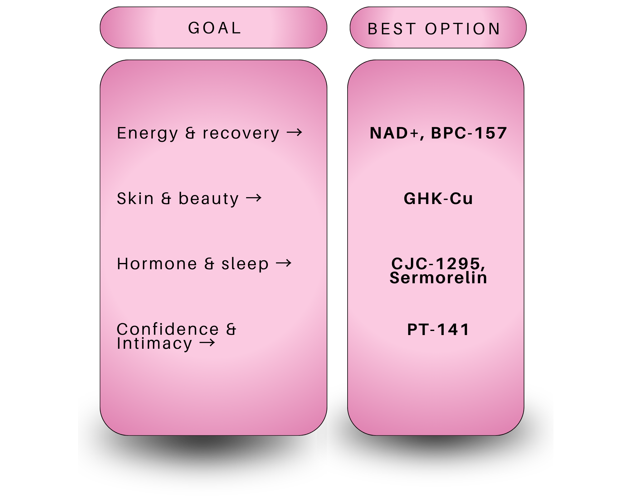 Not sure which peptide is right for you? Here’s a quick guide: